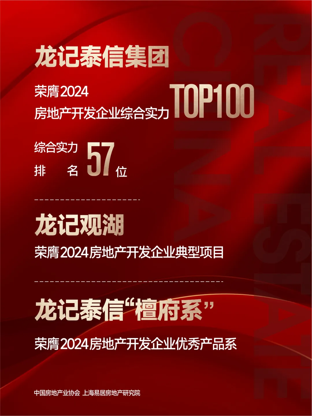 不仅如此,龙记泰信集团2024开年提质进阶,荣耀位列“2024房地产开发企业综合实力TOP100”第57位,品牌实力再获行业权威认可。